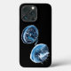 Água-viva-lua original de arte aquosa-coloração fina. Peixes de gelatina luminescentes sobre fundo preto.