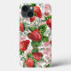 Morango Vermelho e rosas cor-de-rosa entrelaçam-se numa vinha rasteira. Padrão elegante e bonito.