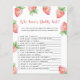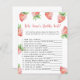 Cartão de convite para chá de fraldas de menina bonita com ilustração aquosa de morangos. O texto diz "um bebê doce de fruta está a caminho." Itens correspondentes disponíveis.