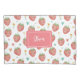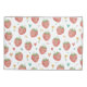 Este adorável travesseiro personalizado apresenta morangos kawaii com rostos sorridentes, rodeados por flores, corações e formas pastéis de branco.