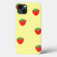 As morangos e da caixa resistente amarela do iPhone 6 de Xtreme das bolinhas o caso customizável do iPhone 6 têm morangos vermelhas bonitos com bolinhas brancas em um fundo amarelo.