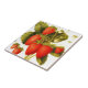 Morangos vindimados com folhas verdes - uma ilustração gráfica antiga que apresenta alguns morangos maduros e maduros com folhas verdes. Tem um bom sentimento no início do verão. Você pode personalizar este azulejo cerâmico com seu monograma/texto/logotipo. A imagem original foi publicada no livro "As frutas da América : contendo figuras ricamente coloridas, e a descrição do cheio de todas as variedades mais escolhidas cultivadas nos Estados Unidos" (1848) " - foi editada e aplicada neste item por Alma Wad.