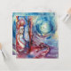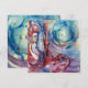 Colorida, caprichosa, romântica, pintura contemporânea figurativa simbolista em aquarela para uma figura lendária espiritual e mística em tons de azul, rosa, vermelho, roxo, violeta e branco por Alessandro Lumini 1988. Design artístico e sofisticado fácil de personalizar para cerimônia de casamento, cartão de anúncio de núpcias, cartões de lugar, save-the-date, cartões de agradecimento, chá de noiva, festas de aniversário de 16 anos e quinceañera, chá de revelação de noivado romântico, Natal, festa de Natal no escritório, reuniões de família, celebrações de Ano Novo, Dia de São Patrício, Carnaval, festas de Terça-Feira Gorda, aniversários de casamento, encontros, formaturas escolares, concertos, recitais ou qualquer outro evento que você desejar!. Morgan le Fay, também conhecida como Morgane, Morgaine, Morgana e outras variantes, é uma poderosa feiticeira de Avalon na lenda Arturiana. Avalon (provavelmente derivada da palavra celta galesa afal, que significa maçã) é uma ilha lendária apresentada na lenda Arturiana, famosa por suas maçãs lindas. Aparece pela primeira vez na narrativa pseudo-histórica de Geoffrey de Monmouth de 1136, "A História dos Reis da Grã-Bretanha", como o local onde a espada de Arthur, Caliburn (Excalibur), foi forjada e, posteriormente, onde Arthur foi levado para se recuperar de seus