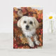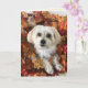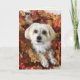 Brincar nas folhas de outono é tudo o que este pequeno Morkie precisa para ter um dia cheio. Agora ele está pronto para alguns carinhos e... quem sabe um pedacinho de torta de abóbora? Escolha este lindo companheiro como cartão de saudação ou convite para a temporada de outono!