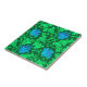 Grande azulejo cerâmico numa vintagem William Morris cor damasco floral de flores e folhas anêmonas, melhorada digitalmente e colorida - folhas verdes esmeraldas e flores em tons de azul ceruliano e de cobalto sobre fundo verde esmeralda escuro