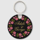 Um Chaveiro de casamento floral, maravilhosamente rico e moderno, com cor d'água rosa, floralwreath e sobre fundo negro. Linda coloração d'água, cor rosa, coroa borda floral, rodeia seu texto. Personalize o texto de exemplo mostrado no design com os nomes da noiva e do noivo ou outro texto desejado.