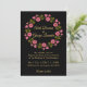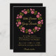Um convite para o casamento floral, maravilhosamente rico e humorado, com flores florais cor-de-água rosa e folhas em um fundo preto contrastante. Tem uma sensação adorável de elegância clássica enquanto permanece muito boêmica. Sinta-se à vontade para personalizar e torná-lo seu; também, sinta-se à vontade para procurar o resto da coleção por produtos de correspondência e coordenação!