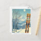 Bonjour, das montanhas nevadas de Morzine, Auvergne-Rhône-Alpes, França, na Europa! Esperamos que esteja tendo umas ótimas férias de esqui. Este cartão-postal apresenta uma linda paisagem de montanha de cinzas azuis com conselhos de esqui retrorados em um padrão tribal laranja. Todas as frases de texto podem ser personalizadas para você!