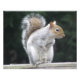 Esta maravilhosa impressão mostra uma fotografia fofa de um Esquilo de Cinza (Sciurus carolinensis), sentado numa cerca de Jardim. O esquilo tem um corpo de cinza, barriga branca e cabeça e cauda marrons. Este esquilo engraçado virado lateralmente como se estivesse mostrando seu melhor lado para a câmera. O esquilo tem a cauda cortada delicadamente sobre as costas e parece muito bonito. O fundo escuro das árvores mostra este roedor maravilhoso, perfeitamente maravilhoso.