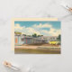 Ilustração vintage de viagem e transporte com imagem apresentando o fabuloso destino de férias do Golden West Lodge, um exemplo clássico de motel dos anos 50. Uma palmeira está ao lado do escritório e um carro antigo está no estacionamento. Hora de uma viagem!