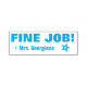 Este design de carimbo divertido apresenta a mensagem "FINE JOB!" e um nome de professor personalizado. Ele também apresenta uma forma decorativa de contorno de estrela. Pode ser usado por um professor, educador ou orientador ao formando trabalho estudantil, para reconhecer que um estudante fez um trabalho excepcional.