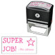 Este design de carimbo inspiracional apresenta a inspiradora mensagem "SUPER JOB!" e o nome de um professor ou educador personalizado. Ele poderia ser usado por um professor, educador, ou tutor ao marcar tarefas, para reconhecer que o aluno fez um trabalho de excelente.