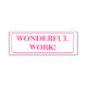 Este design de carimbo encorajador apresenta a mensagem elogiante "WONDERFUL WORK!". Ele poderia ser usado por um professor de escola, educador ou orientador ao marcar trabalhos, para reconhecer que o aluno fez bem.