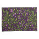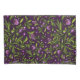 Padrão floral intrincado com folhas verdes, flores roxas e bagas em um fundo roxo escuro. Artístico e vibrante, transmitindo um tom caprichoso.