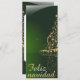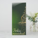 Motivo de Navidad verde con árbol de Navidad hecho de estrellas doradas con las palabras Feliz Navidad en alemán, en español, en francés, en inglés. El texto poderia ser alterado.