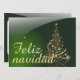 Motivo de Navidad verde con árbol de Navidad hecho de estrellas doradas con las palabras Feliz Navidad en alemán, en español, en francés, en inglés El texto se puede cambiar.