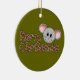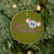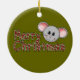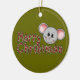 Um pequeno rato de cinza e um texto riscado de canas vermelhas e verdes que diz "Feliz Natal" num ornamento de férias de manutenção que você pode mudar a forma antes de fazer o pedido.