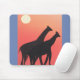Este mouse pad foi projetado com minha representação de duas girafas silenciadas contra um pôr do sol laranja.