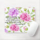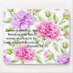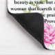 Este mouse pad apresenta um belo design floral com uma escritura sobre "a mulher que teme o Senhor" (Provérbios 31:30) impressa nele.