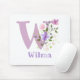 Design apresenta Monograma & Nome com Flores em ambos os lados no estilo pastel de cor de água. O nome de exemplo é Wilma. Pode ser para qualquer um com um nome começando com W.