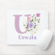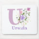 O design apresenta Monograma & Nome com Flores de ambos os lados num estilo pastel de aguarela. O nome do exemplo é Ursula. Pode ser para qualquer pessoa com um nome que comece com U.