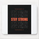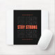 Mantenha-se forte" Mouse Pad, projetado para inspirar resiliência e focar em sua rotina diária. Este mouse elegante e durável apresenta uma citação ousada e poderosa "Permaneça Forte" impressa em alta definição em toda a sua superfície, servindo como um lembrete constante para enfrentar desafios. Criado com uma superfície suave e antideslizante, o mouse pad garante precisão e controle, esteja você trabalhando, jogando ou simplesmente navegando. O tecido mole proporciona uma sensação confortável durante longas horas de uso, enquanto a base de borracha resistente a mantém no lugar com segurança. Perfeito para o espaço de trabalho moderno, este mouse pad adiciona estilo e motivação à sua mesa, fazer-o um companheiro ideal para qualquer um que precise de um pouco de impulso ao longo do dia. Mantenha-se focado, continue orientado e, o mais importante, mantenha-se forte.