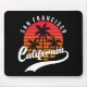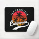 Mouse pad de San Francisco com um design retrô que apresenta um pôr do sol e palmeiras em fundo preto (cor do fundo personalizável). Este design também tem a Califórnia em uma fonte manuscrita com um glifo de cauda swash para aquele visual retrô elegante. Este Mouse Pad é ideal para você se é de San Francisco ou pode ser um presente ou lembrança para alguém.
