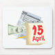 Este design apresenta o 15 de abril como dia fiscal. Mostrados nesta design são um formulário de 1040, uma nota de 100 dólares, um lápis e um calendário com 15 de abril, mostrados em letras grandes vermelhas. Este mouse pad pode ser usado em qualquer mesa. Um presente de excelente para o seu contador.