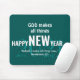 PAD MOUSE teal na moda para o Ano Novo 2021 com a mensagem GOD FAZ TODAS AS COISAS NOVAS com FELIZ ANO NOVO em tipografia branca. O ano é escrito em uma escrita decorativa mais leve, com o verso Bíblia do Livro da Revelação. O verso das Escrituras e o ano são PERSONALIZÁVEIS, de modo que você pode substituí-los pelo seu verso de Bíblia favorito ou outro texto e também PERSONALIZAR O ANO. Trata-se de uma oferta ideal de Ano Novo para colegas de trabalho ou empregados, grupos religiosos, etc., e faz parte da coleção do Ano NOVO por Designs Bereanos.