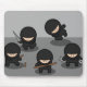 Cinco pequenos ninjas bonitinhos em várias posições e possuindo uma variedade de armas, incluindo um punhal, alguns nunchucks e atirando estrelas.
