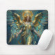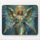 A beautiful angelic mousepad with a beautiful angel with a turquoise marble background and a gold halo in an impasto style.