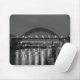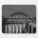 Longa exposição de preto e branco da ponte Tyne à noite. Em segundo plano estão a Ponte Swing, Ponte de Alto Nível e Ponte Metro QEII.