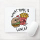 A que horas é o almoço? Engraçado hambúrguer e batatas fritas apaixonadas. Uma combinação perfeita para crianças e adultos.