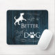 Adicione um toque engraçado ao seu escritório doméstico ou ao seu espaço de trabalho com uma Vida é melhor com um Pad do Rato de Cachorro. O design do mouse apresenta um fundo azul-rústico de madeira profundo com o ditado "A vida é melhor com um cão" com uma pata impressa e embelezamentos da silhueta canina. Itens de presentes adicionais disponíveis com este design também.