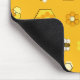 Esta almofada de rato de abelha de mel tem um design de meio século amarelo estilizado de um padrão de abelha de mel. Este padrão retrorreflector tem flores hexadecimais, colmeias de abelhas e design de mel nele para fazer um decoro perfeito para o meio século moderno do escritório. Você pode fazer o padrão maior ou menor na plataforma. presente de excelente para qualquer um que goste de designs de médio retrógrado e abelhas produtoras de mel.