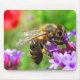 Este mousepad caracteriza uma abelha listrada dourada que pollinating ocupada uma flor roxa do bonariensis do verbena. O pólen é visível no saco em seu pé. Uma flor vermelha colorida da papoila e uma folha verde luminosa adicionam ao sentimento lindo, ensolarado do verão. As asas esfarrapadas são uma mensagem que a vida pode ser resistente no paraíso.