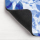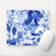 Um padrão abstrato de folhas azuis e brancas aleatórias.