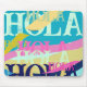 Texto Hola repetido numa paleta colorida de azul, amarelo, rosa, turquesa e verde.