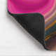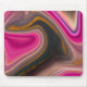 Um mouse pad com um design abstrato com aparência ranhosa. As cores rosa e preta misturam-se e unem-se num movimento giratório. Espelhos de dourada falsa entre as camadas.