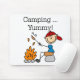 Uma figura menino da vara brinda cachorros quentes sobre uma fogueira e o texto lê o "acampamento é saboroso" em t-shirt de acampamento do design, canecas, cartões, etiquetas, sacolas, e outros artigos, aperfeiçoam para qualquer um cuja a parte favorita do acampamento é cachorros quentes cozinhados em uma fogueira aberta!