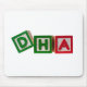 Blocos de madeira que formam as letras DHA isoladas no fundo branco