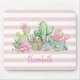 Mousepad Adorável Cacto Aquarela,Listras Rosa Suculenta