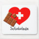 A suiça é famosa por chocolate e este divertido tapete de souvenir mousepad / rato apresenta um bloco de chocolate em cima da bandeira vermelha suíça em uma design de forma cardíaca. O Mousepad tem um fundo branco e um slogan "Schokolade", que é a palavra alemã "chocolate". Mmm... delicioso!