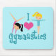 Eu Adoro ginástica. Um presente de ginástica bonito com um texto teal adorável entre duas garotas bonitinhas e um belo coração rosa. Um presente de ginasta bonito para crianças ou treinador de ginástica feminina. Uma morena em uma banca e uma menina loira de braços estendidos.