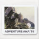 Adventure Awaits text which is customizable by you. Statue of Cthulhu on a fantasy landscape by the sea, with a ship coming through the archway.
