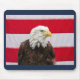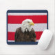 Uma imagem maravilhosa de uma águia careca posando em frente a uma Bandeira Americana.