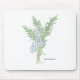 Mousepad com ilustração botânica de um ramo de alecrim florido. Direitos autorais da obra: Dominic A. White. Todos os direitos reservados.