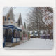 A neve de inverno acentua as coloridas cascas vitorianas em Oak Bluff no Vineyard de Martha. A Associação de Campinas do Vineyard da Martha (MVCMA), uma atração popular na ilha, abriga centenas de casacos vitorianos de gengibre. Oak Bluffs já foi conhecido como Cottage City. O Vineyard de Martha está localizado em Massachusetts, perto de Cape Cod.