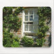 Uma fotografia de uma charmosa parede de casacos inglesa coberta por vinhas e uma janela com uma delicada cortina branca. Veja os produtos "English Cottage II" para uma cena de jardim de cheio. Esta imagem também é apresentada como o wallpaper widescreen "English Cottage I" (Algodão inglês I) na seção de Viagem do site www.mlewallpapers.com.