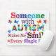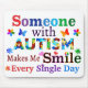 Uma citação inspiracional do Autismo de "Alguém com AUTISMO Me Faz SORRIR Todo Solteiro Dia" com quebra-cabeça Autismo coloridos, lindas flores e borboletas para apoiar crianças autistas e suas famílias.